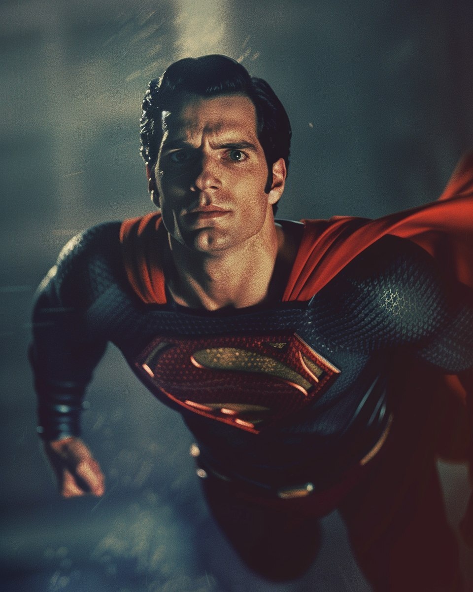 Создано на основе запроса: blurred out of focus photo of a stunning interpretation of the most artistically and aesthetically refined representation of the deepest and darkest essence of a full body action scene of Superman in his Superman outfit, nighttime interior, gritty, dramatic contrast of Dark shadow and light, film grain, dynamic angle, foreshortening, action pose, cinematic, soft vignette, f/1.4 1/10 sec shutter, soft light
