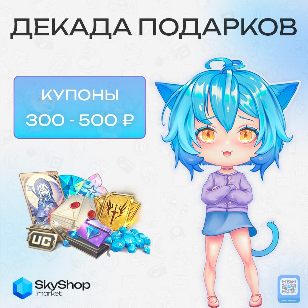 🎁 Декада подарков от SkyShop Market! 🪙 Каждые 10 дней, случайные 10 участников получат купоны от 300 до 500 ₽ - которые можно потратить на любую покупку доната на 🤩 сайте ⭐️ Для участия: будьте подписаны на канал @Skyshop_Market, поставьте любую реакцию к посту и напишите любой комментарий! Отметь друга и он тоже получит купон 100 RUB! 🗓 Итоги через 10 дней, после итогов раздача снова будет запущена!