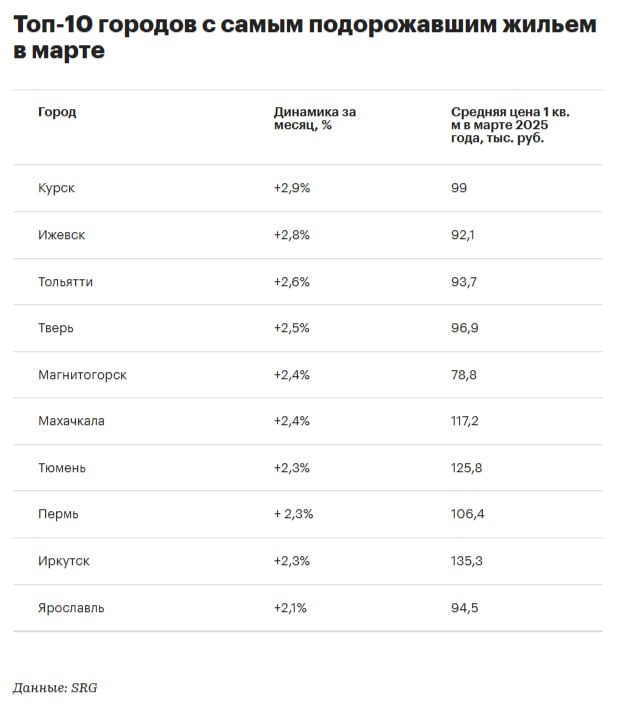 🥾 Топ-3 городов по росту цен на вторичку в марте: