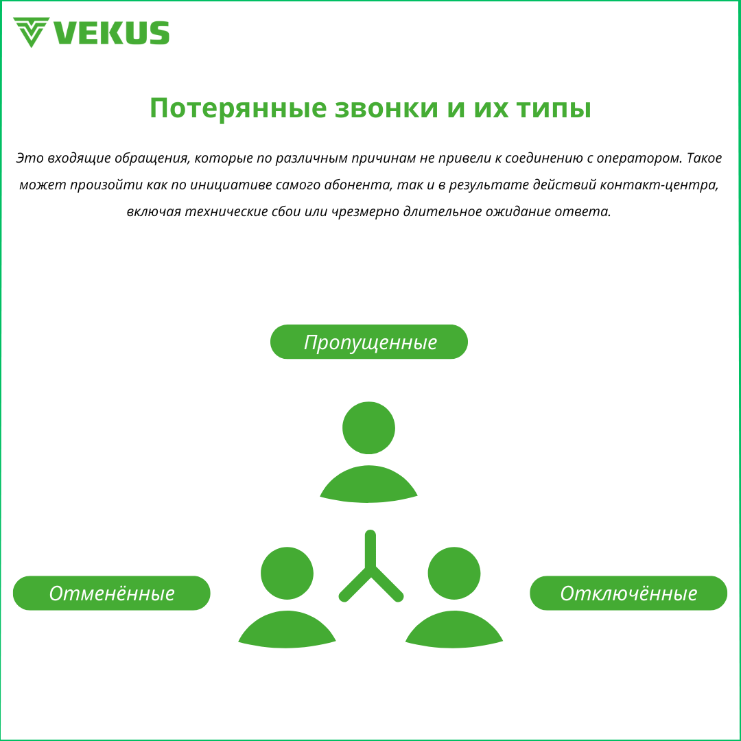 Они представляют собой входящие обращения, которые по различным причинам не привели к соединению с оператором. Такое может произойти как по инициативе самого абонента, так и в результате действий контакт-центра, включая технические сбои или чрезмерно длительное ожидание ответа. Существует три основных типа потерянных звонков Отмененный звонок характеризуется тем, что абонент самостоятельно прерывает процесс дозвона, и такие случаи составляют 2-5% от общего числа обращений. Пропущенный вызов происходит, когда система прерывает соединение из-за превышения установленного времени ожидания. Отключенный звонок возникает в результате технических ошибок, причем для звонков со стационарных телефонов этот показатель составляет всего 0,01%, тогда как для мобильных устройств процент несколько выше. Для снижения количества потерянных звонков необходимо применять комплексный подход. Ключевым аспектом является оптимизация времени ожидания, что достигается путем повышения квалификации операторов и в