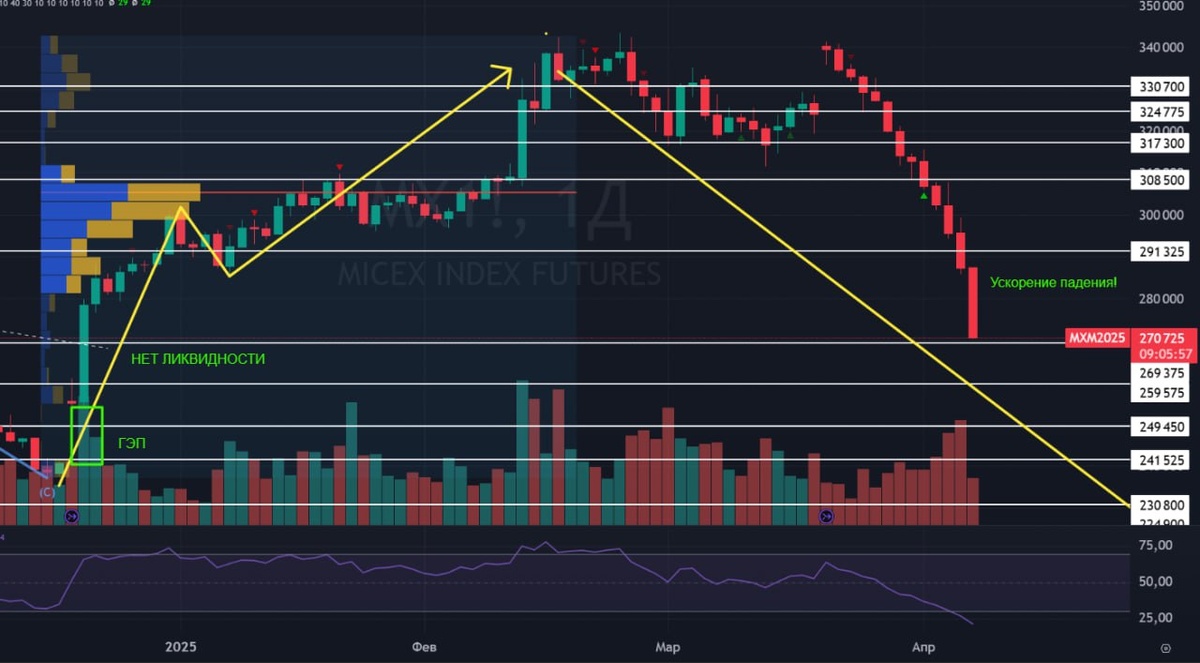 🚗 14-ая дневная свечка подряд вниз с продолжающимся ускорением по фьючерсу на индекс IRUS
