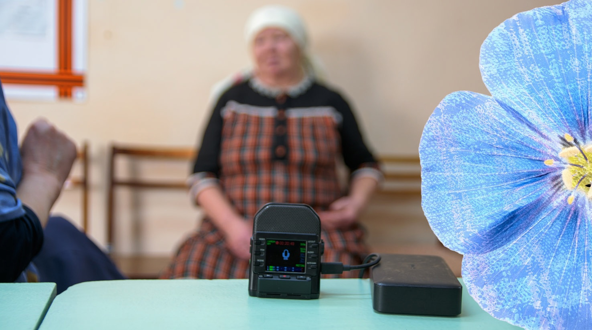 Конечно, теоретический разговор о подготовке к экспедиционному сеансу не может обойтись без практики – без проведения самой экспедиции. В рамках мастерской состоялось сразу две «обучающие» экспедиции – с жительницами Кузьмовыра Галиной Вениаминовной Ившиной и Элисой Геннадьевной Касаткиной. И – мы же говорили о том, что наши информанты часто выступают и интервьюерами? – обе они как раз принадлежат и к носителям информации, и к сообществу наших волонтеров, собирающих «тканые истории». Что удивительно и замечательно, и Галина Вениаминовна, и Элиса Геннадьевна – не коренные кузьмовырки, обе много лет назад вышли сюда замуж. И обе уже так вросли в эту деревню, настолько прониклись ее духом, что кажется – они и есть самые что ни на есть «коренные».