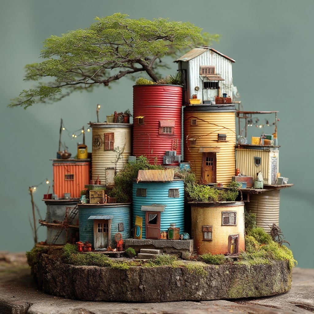Создано на основе запроса: tin can village --- Автоперевод: оловянная деревня Неплохо вышло? 🤔 https://dzen.ru/id/65c0c65c86e4f837c27b24d7 #ИИ #AI #нейросеть #midjourney #art