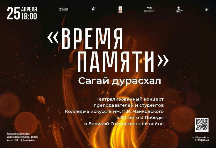 Колледж искусств представляет театрализованный концерт «Время памяти» («Сагай дурасхал») Мероприятие пройдет в театре оперы и балета 25 апреля в 18:00 Студенты колледжа исполнят песни военных лет, прозвучат стихи о Победе, творческие коллективы порадуют душевными и патриотическими номерами. Билеты можно купить по ссылке: https://iframeab-pre6928.intickets.ru/event/56572624