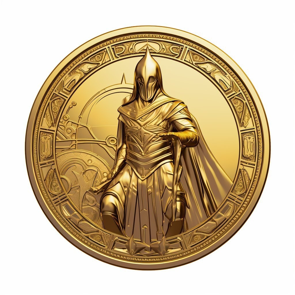 Создано на основе запроса: a gold coin, magic the gathering art style, no background, high definition