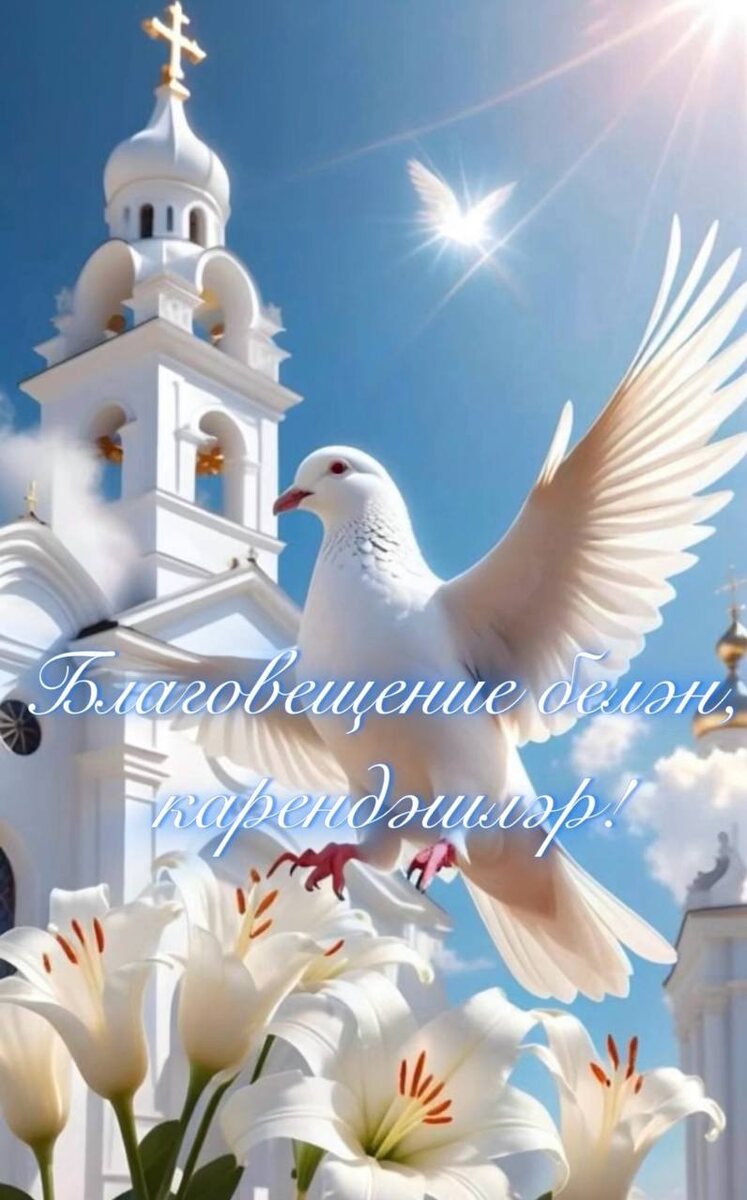 Бүген, 7 апрель - Благовещение🕊️ Изге Кыз Марияга пәриштә изге хәбәр әйткән көн. Карендәшләр, бәйрәм белән сезне! Барыгызга да ару хәбәрләр ишетеп кенә яшәргә язсын!❤️ Ару хәбәр көне🕊️ Изге Арукыз Мариягә Иңдерелгән Арухәбәр. Язның җәмле бу көнендә Тиз таралган изге хәбәр. Арухәбәр иңдерелгәч Көн җәмләнгән ди, җактырган. Изге Арукыз Мария Яз җегәрен дә арттырган. Арухәбәр иңдерелгәч Яңгырлар да яуып киткән. Мул уңышлы еллар теләп Чиркәүләрдә келәү үткән. Зинаида Захарова