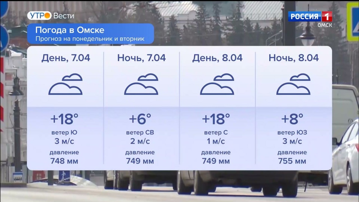 Сегодня, по данным Обь-Иртышского УГМС, в Омске ожидается тёплая погода. Днём температура воздуха составит +18°C, без осадков. Ветер будет западный со скоростью 3 м/с. Ночью температура опустится до +6°C, так что не забудьте взять с собой тёплую одежду, если планируете вечерние выходы.