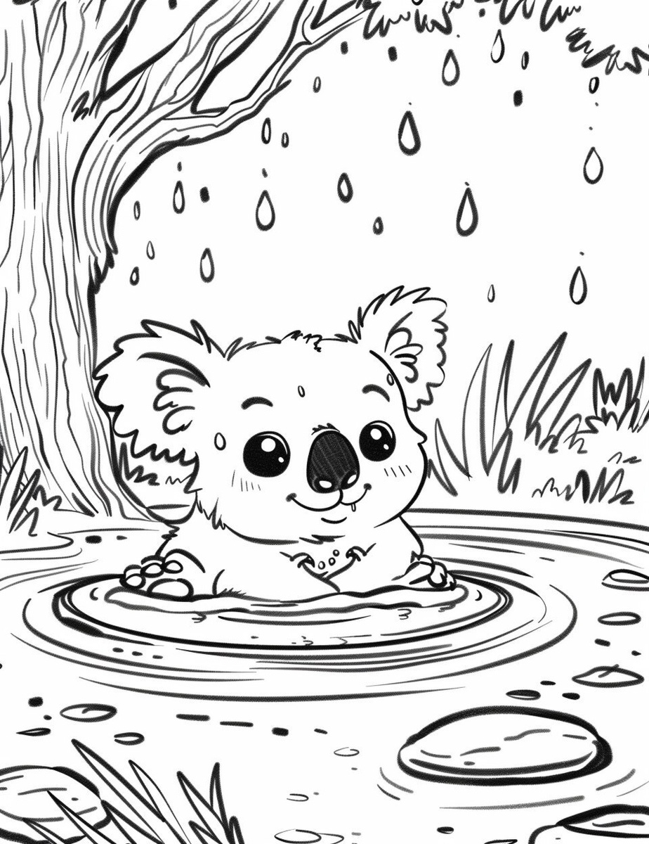 Создано на основе запроса: A simple black-and-white coloring page for toddlers (3 years old) showing a cute cartoon koala waking up in a tree. A koala splashing feet in a round puddle. Big water drops, easy shapes for coloring. --- Автоперевод: Простая черно-белая раскраска для малышей (3 года), показывающая милую мультипликационную коалу, просыпалась на дереве. Интересно вышло? 🤔 https://dzen.ru/id/65c0c65c86e4f837c27b24d7 #ИИ #AI #нейросеть #midjourney #art