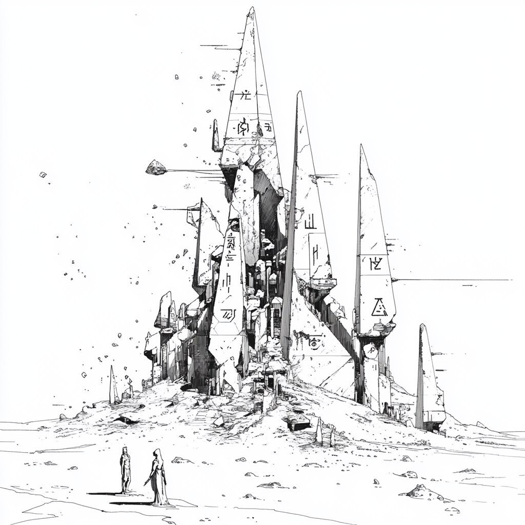 Создано на основе запроса: spires take the form of vaguely pyramidal towers, typically slender and tall and resembling some kind of pylon, line art, black and white art, comic book art, covered in mystic glyphs, simple art, science fantasy --- Автоперевод: Шпили принимают форму смутно пирамидальных башен, обычно стройных и высоких и напоминающих какого -то своего рода пилона, линейного искусства, черно -белого искусства, искусства комиксов, покрытых мистическими глифами, простым искусством, научной фантазией Круто выглядит? 🤔 https://dzen.ru/id/65c0c65c86e4f837c27b24d7 #ИИ #AI #нейросеть #midjourney #art