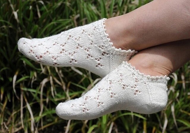 Это описание – всего лишь способ, каким я вяжу укороченные носочки для себя. Размер моей ноги по европейским стандартам – 39. Если ваш размер ноги отличается от моего – вы можете скорректировать количество петель в схеме и адаптировать её под свою ногу. Конструкция модели: «Снизу вверх», соединение техник «укороченные ряды» и Flap Heel Используемые техники: Toe-up (вязание носка снизу вверх), Judy’s Magic cast-on, Magic Loop, вязание по кругу, укороченные ряды, обработка края крючком