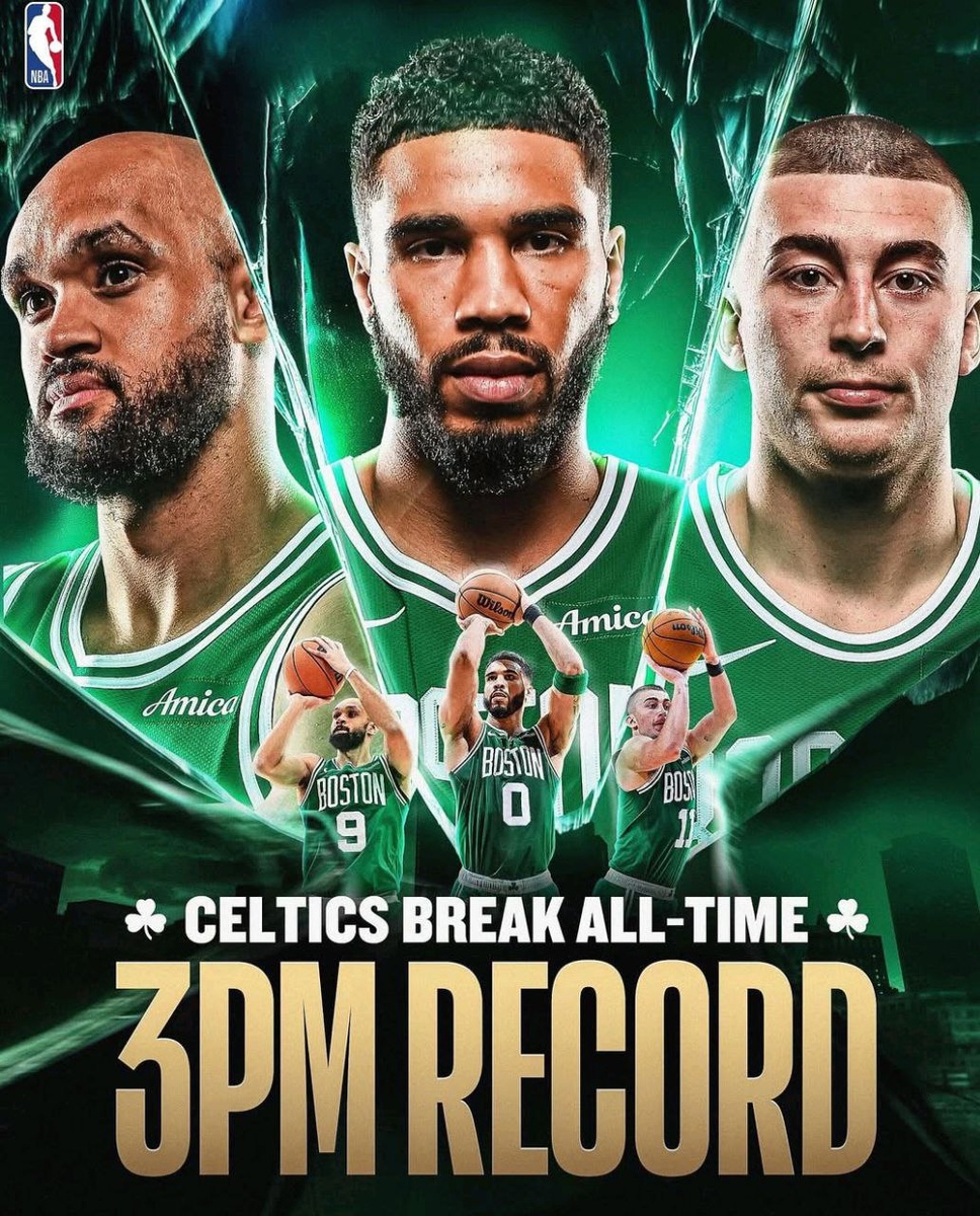 Тем временем в НБА у Селтикс новый рекорд!! Лучшие команды в истории НБА по количеству трехочковых бросков за сезон 🔥