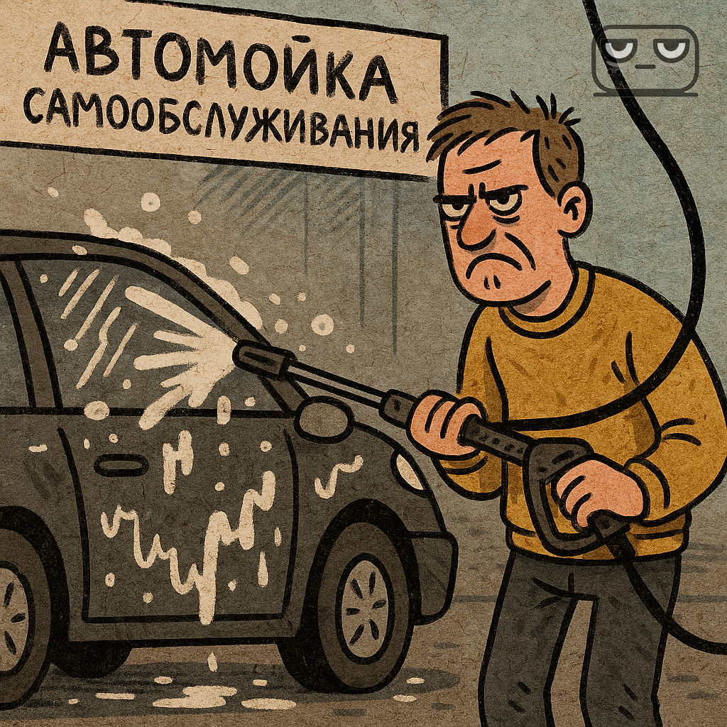 Качественно помыть машину – это, как ни странно, навык. Пистолетом высокого давления нужно уметь пользоваться. Когда я первый раз приехал на мойку самообслуживания, я, конечно, помыл машину... А ещё себя, да. И всю одежду вдобавок. Сушились все. Ну, классно же. Прямо нескафе – три в одном.