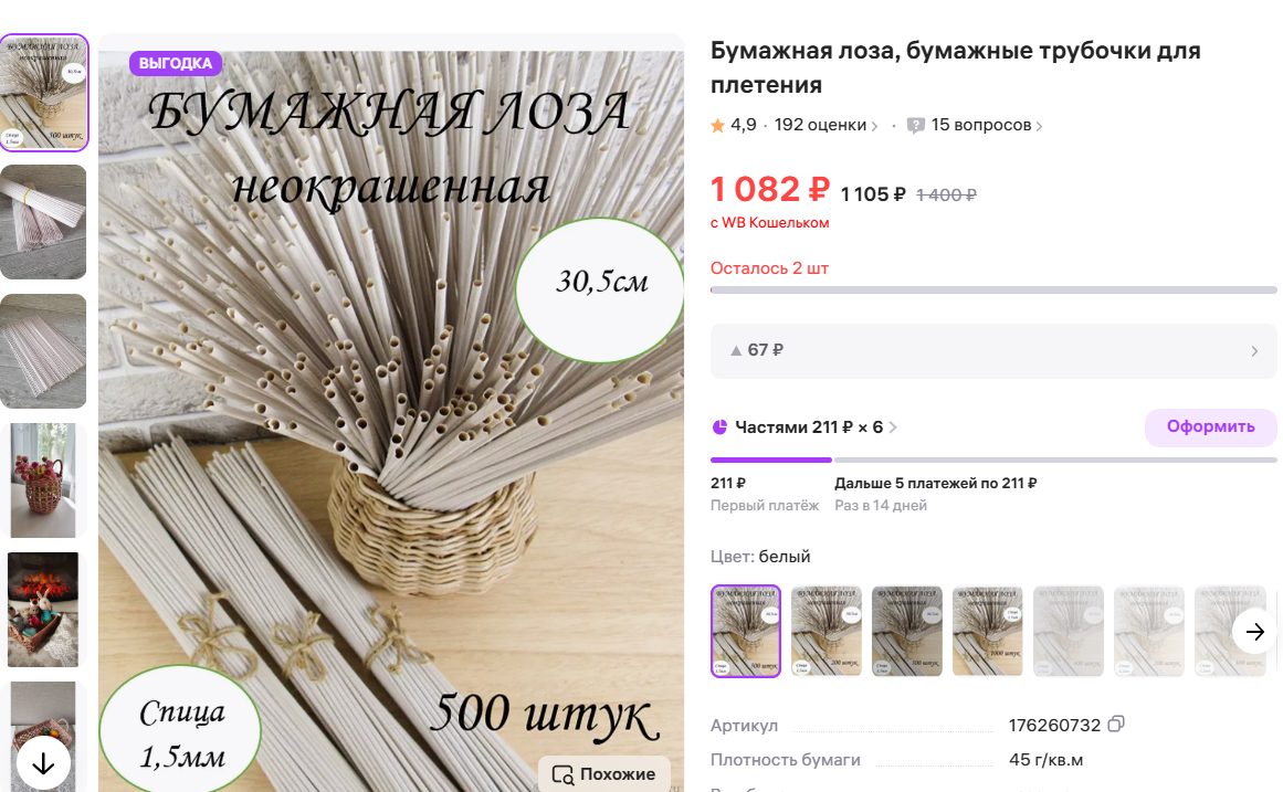 Кстати, когда смотрела вебинар по плетению из бумажной лозы, узнала, что есть рукодельницы, которые неплохо зарабатывают именно на трубочках. Посмотрите, к примеру, сколько предложений на Ярмарке мастеров.