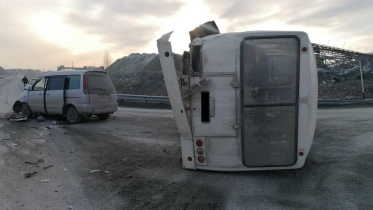 Под Новосибирском опрокинулся автобус с пассажирами после удара машины в бок