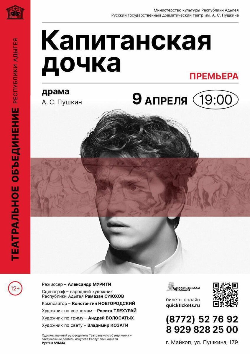 🎭 Что посмотреть в Пушкинском народном доме на этой неделе? 9 апреля — драма «Капитанская дочка» (Билеты проданы) 10 апреля — драма «Выстрел в метель» 11 апреля — драма Шъузабэхэр («Вдовы») 12 апреля — сказка «Аленький цветочек» 🎫 Билеты здесь 💳 Действует «Пушкинская карта» Ждем вас! #ЕдинаяРоссия #ЕРпоздравляет #КультураМалойРодины #единаяроссия #ТОРА #РеспубликаАдыгея #новости_минкульт_РА #Историческаяпамять #Победа80