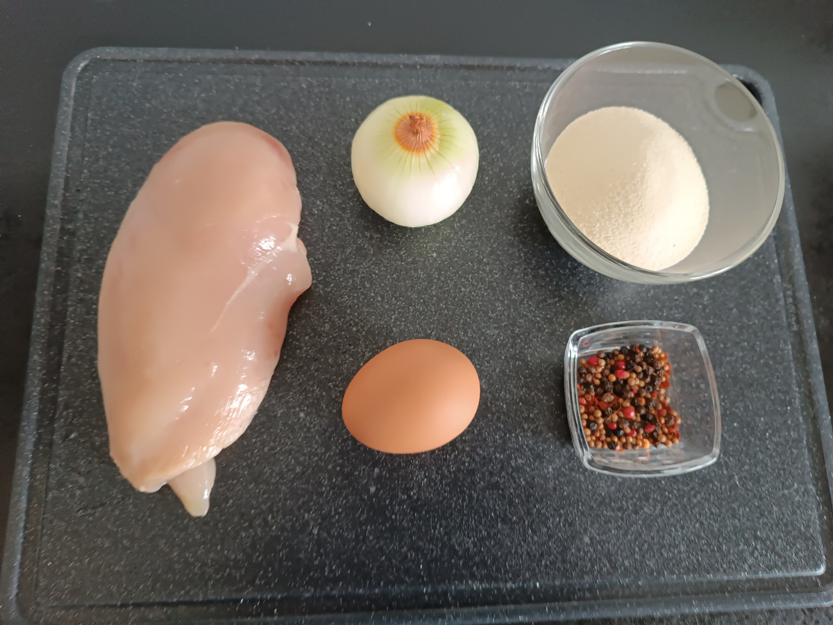 Здравствуйте, дорогие друзья! Предлагаю приготовить очень лёгкое и вкусное блюдо, которое понравится не только взрослым, но и детям - «Куриные котлеты». Продукты доступные, готовятся быстро, результат отменный! Ну и, как обычно Нам понадобятся: Филе куриной грудки - 1 шт., Лук - 1 шт., Яйцо - 1 шт., Манка - 2-3 ст.л., Соль, перец, растительное масло. Филе режем небольшими кусочками, лук тоже очищаем и нарезаем произвольно. В чашу блендера кладём кусочки филе и лука, добавляем яйцо, измельчаем. Получится жидкий фарш. Перекладываем в миску, добавляем манку,соль и перец. Перемешиваем. Даём постоять минут 10, чтобы манка разбухла. Лепим смоченными водой руками котлетки, обжариваем их на растительном масле, периодически переворачивая, до готовности. Хорошо подавать с картофельным пюре и солёными или маринованными огурчиками - ну очень вкусно!