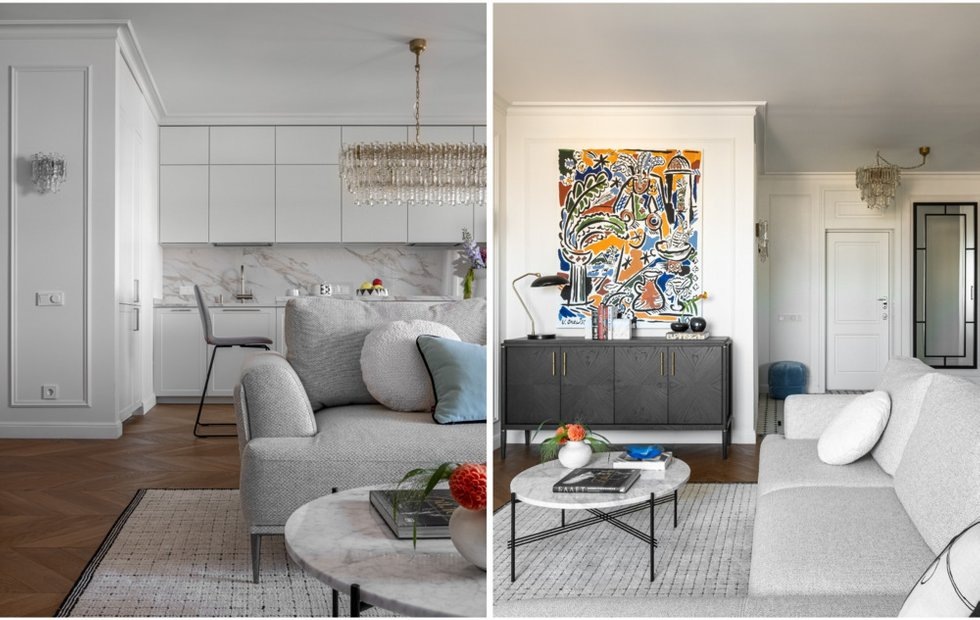 Так обычная квартира в доме 1996 года постройки превратилась в пространство с душой и характером, где французская неоклассика гармонично соседствует с духом старой Москвы. Светлый, наполненный воздухом интерьер стал идеальным фоном для жизни молодой пары, увлеченной искусством и готовой к пополнению семейства.