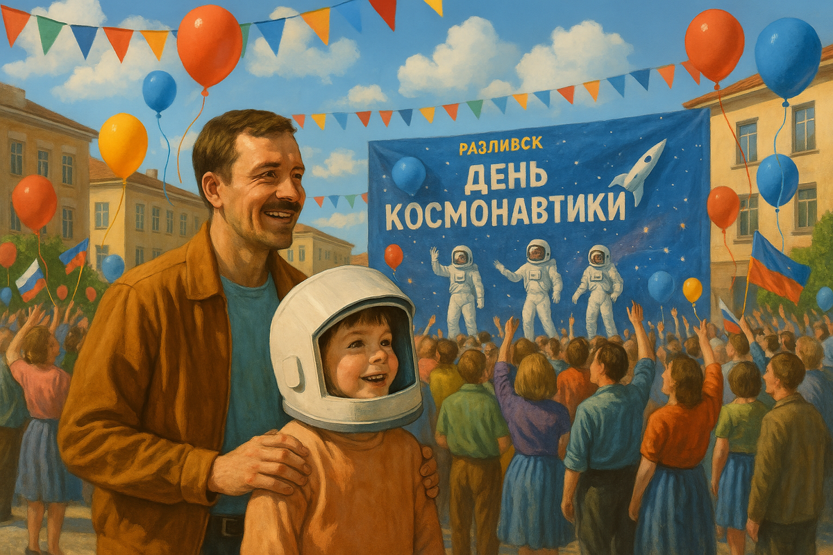 Центральная площадь уже была украшена. Над сценой — плакат с изображением Гагарина, в воздухе — флажки, шары, лёгкий ветер. Из динамиков играла музыка: то советские марши, то современные песни о космосе. Возле сцены стояли палатки с ватой, попкорном, горячим чаем. Где-то сбоку — передвижной планетарий в виде надувного купола. Сотрудники музея разворачивали модели спутников и ракет.