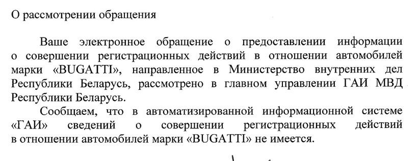Конечно, не у каждого есть возможность присоединиться к избранной группе владельцев Bugatti, объединенных вневременной модой. По данным офиса регистрации компании, лишь единицы таких были на территории бывшего СССР, а теперь и России. Речь идет только о 12 ретроавтомобилях Bugatti довоенного выпуска. В Беларуси ни одной ретромодели Bugatti не зарегистрировано, что подтвердил и ответ из УГАИ МВД РБ.
