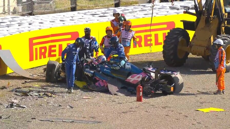 что вызвало красные флаги (дело происходило на тренировке). Также происходило неоднократное возгорание травы на трассе.