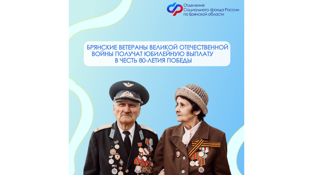Отделение Социального фонда России по Брянской области направит участникам и инвалидам Великой Отечественной войны юбилейную выплату. Ранее соответствующий указ в связи с 80-й годовщиной Победы подписал президент Владимир Путин. По 80 тысяч рублей Отделение СФР по Брянской области направит: По 55 тысяч рублей получат труженики тыла и бывшие совершеннолетние узники фашизма. Кроме того, ежегодно Соцфонд выплачивает участникам и инвалидам Великой Отечественной войны по 10 тысяч рублей ко Дню Победы. – Юбилейная выплата поступит дополнительно к обычной ежегодной выплате. Через отделения почтовой связи выплата будет осуществлена в соответствии с графиком доставки с 3 по 19 апреля. Для получателей пенсии через банки – 10 апреля, – уточнили в СФР. Обращаться с заявлением для получения средств не нужно – выплату назначат автоматически. Брянские ветераны получат юбилейную выплату в честь 80-летия Победы