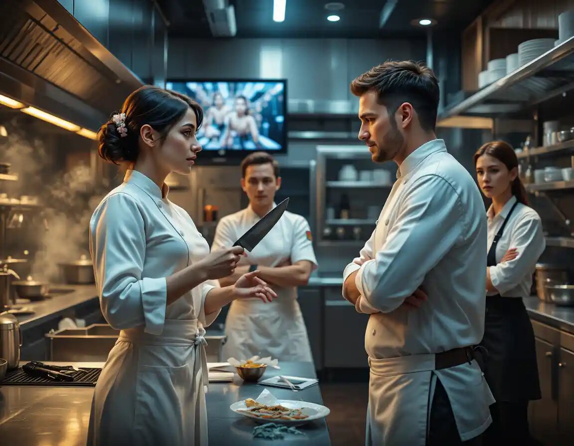 На кухне было как в улье перед бурей. Повара бегали, что-то кричали, а Ева, стоя у плиты, делала вид, что активно увлечена соусом. На самом деле, она следила краем глаза за Машей и Викой, которые что-то тихо шептались, а потом исчезли в подсобке. "Значит, начинается".