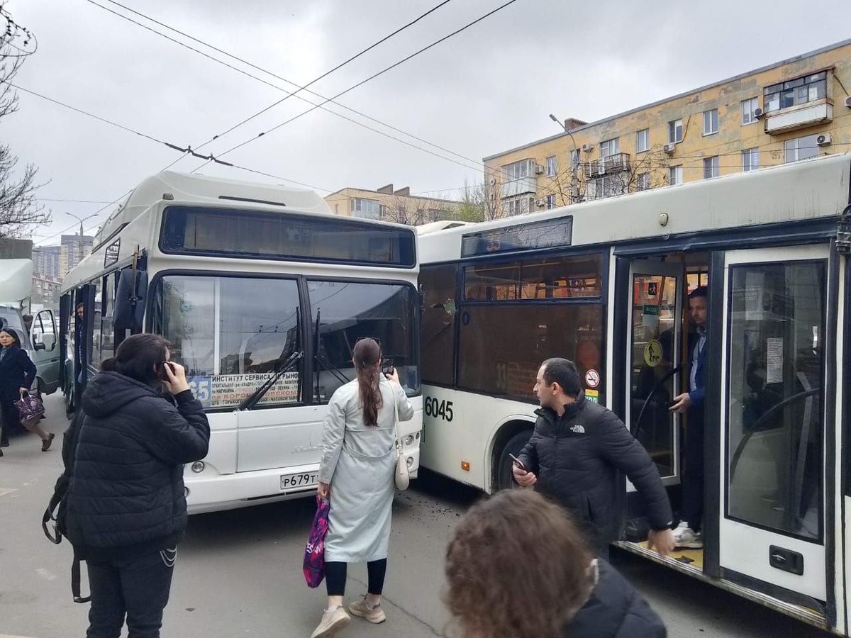 Два автобуса №65 и №33 не поделили остановку в районе ростовского ТРЦ «Рио».