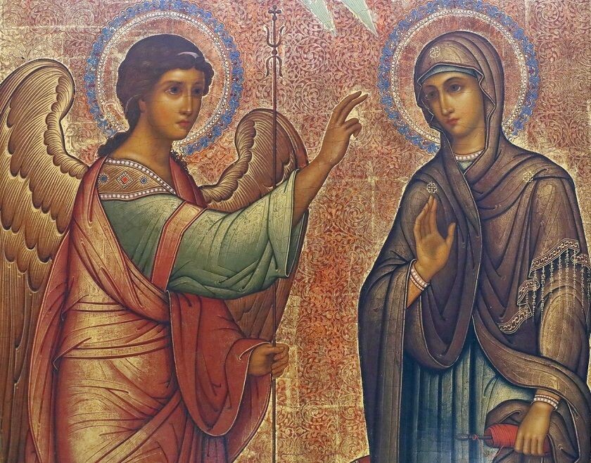 Праздник Благовещения в 2025 году выпадает на понедельник шестой седмицы Великого поста – в этот день совершается Литургия святителя Иоанна Златоуста. Богослужебные стихиры и канон праздника посвящены объяснению архангельского приветствия Пресвятой Богородице и Ее ответа на благовестие. Хочется отметить уникальную особенность канона праздника: он составлен святителем Феофаном, митрополитом Никейским, в форме диалога Архангела и Приснодевы.