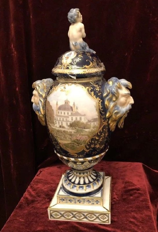 Royal Copenhagen ваза 19 век ВАЗА С КРЫШКОЙ Royal Copenhagen 19 век по модели ФРАНЦ ГЕНРИХ МЮЛЛЕР (FRANTZ HEINRICH MÜLLER) Украшена пейзажем формальной садовой сцены, а также предметами декора, музыкальными инструментами и т.д. Крышка с изображением сидящего Фавна. Ручки отлиты в виде маски головы Пана. Royal Copenhagen, 1888 Стоимость лота: 1 125 000,00 ₽ Подробнее на нашем сайте