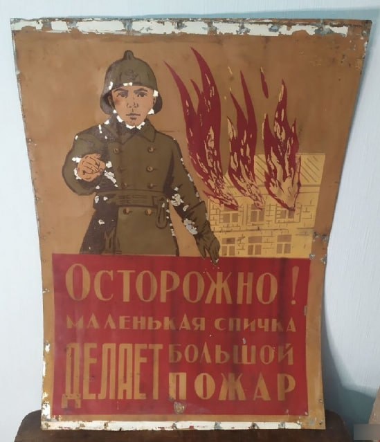 Осторожно! Маленькая спичка делает большой пожар Один из многочисленных вариантов известного плаката Дмитрия Моора, но на пожарную тему. Судя по форме пожарного - довойна. #СССР #металл #краска #пожар Канал @tablichki_ussr предложить табличку: @tablichki_ussr_bot Авито-магазин "Таблички СССР"