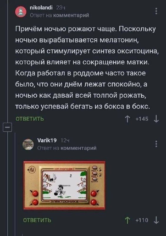 ✍️откопал на просторах интернетов ваших👍 От себя скажу. По моим наблюдениям чаще, все-таки, рожают до 24 часов. А если приплюсовать сюда все дневные плановые операции, то разброс по родам получится примерно такой: 75% днем, 25% ночью. Давайте голосовалку устроим. Не поленитесь проголосовать пожалуйста. Хорошего дня😘❤️ #докториваха #рожаемвместе