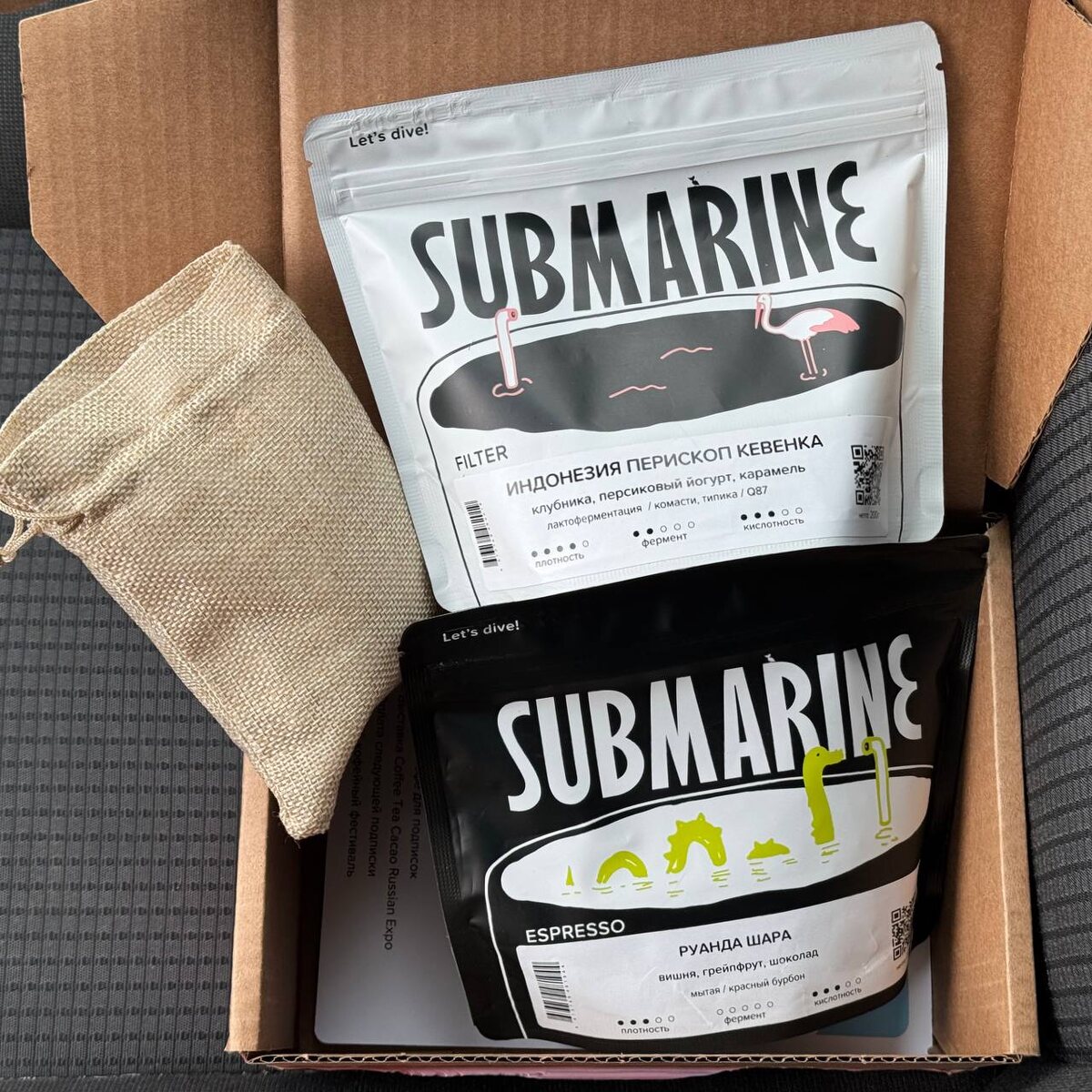 🗒 Приехала Субмарина Держу в курсе, мне приехала подписка от Submarine! Руанда в эспрессо по описанию выглядит очень похожей на Бурунди из прошлой подписки. Такая же обработка, тот же сорт, отсутствие фермента и совпадение по оттенкам вкуса. В целом, это логично, ведь эти две страны расположены рядом друг с другом. Не удивлюсь, если эта Руанда будет также хороша, как Бурунди из прошлой подписки. А вот Индонезия под фильтр выглядит необычнее. Более хитрая обработка, необычное описание вкуса, умеренное количество фермента и оценка в 87 баллов. @Кофезавр