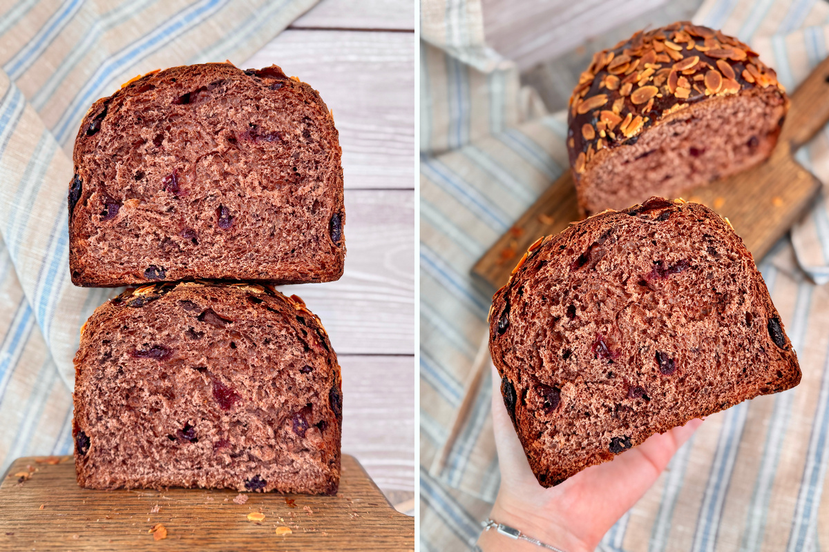 Я очень тщательно искала именно этот рецепт. Мне было интересно, делали ли раньше шоколадные куличи и нашла рецепт именно такого варианта лишь в одной книге 1905 года “Поварское Искусство. Полная школа кулинарного искусства. Настольная книга для молодых хозяек” от преподавателя Санкт-Петербургской школы кулинарных искусств А. Румянцева. Счастью моему не было предела! Значит не только пряные, шафрановые, ванильные куличи пекли в то время! Немного моих комментариев, относительно рецепта: Вот небольшое видео, где можно посмотреть процесс и текстуру теста. Ингредиенты на 4 кулича (диаметр 14 см, высота 10 см): Опара: 200 г молока 130 г муки 30 г сахара 30 г свежих дрожжей Тесто: 550-600 г муки (муки может уйти чуть больше или меньше) 160 г сахара 190 г растопленного сливочного масла 330 г яиц (примерно 6 яиц) щепотка соли 1/2 стручка ванили 100 г изюма (я взяла вишню, замоченную в роме) 120 г растопленного шоколада (горького, более 54% содержания какао) Приготовление: С вечера замочите виш