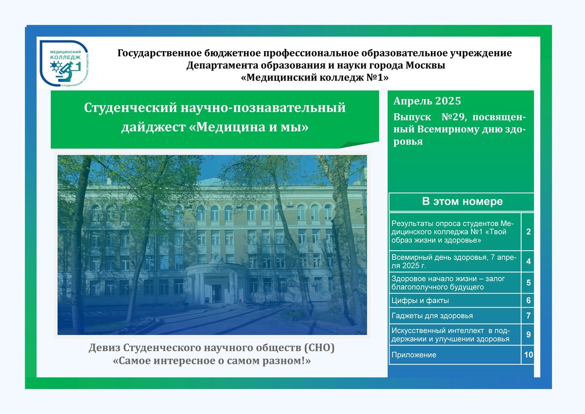2️⃣9️⃣ выпуск Студенческого научно-познавательного дайджеста «Медицина и мы», посвященный Всемирному дню здоровья