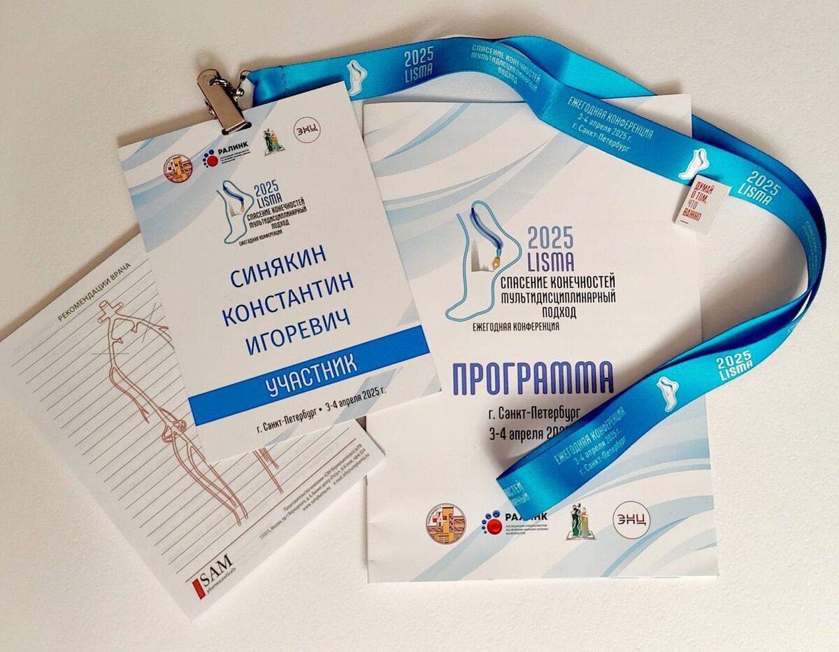 Врач-сердечно-сосудистый хирург Университетского клинического центра им. В.В. Виноградова (филиал) РУДН Константин Игоревич Синякин посетил в Санкт-Петербурге VIII ежегодную научно-практическую конференцию «LISMA 2025: спасение конечностей. Мультидисциплинарный подход». В докладах выступающих были представлены великолепные результаты лечения пациентов с критической ишемией нижних конечностей ведущими клиниками Санкт-Петербурга, Москвы, Челябинска, Ростова-на-Дону и других крупных центров. Для наглядности представили трансляции из операционных. Слушатели участвовали в интересных дискуссиях и рассмотрели ряд определенных тактик ведения больных мультидисциплинарной командой при той или иной патологии сосудов нижних конечностей.