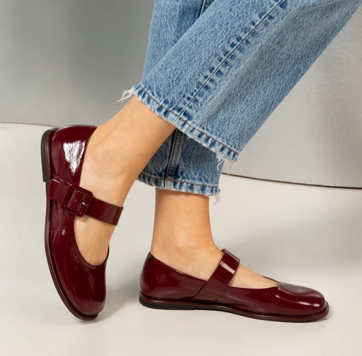 Для весенних вечеров или торжественных мероприятий бордовые балетки из лаковой кожи станут отличным выбором.
