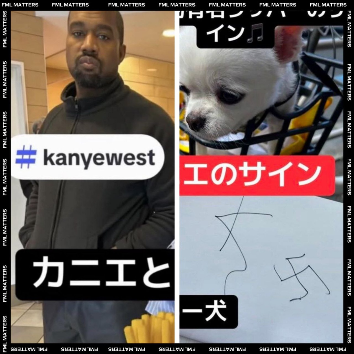В Японии Йе раздаёт фанатам автографы в виде нацистских символов.