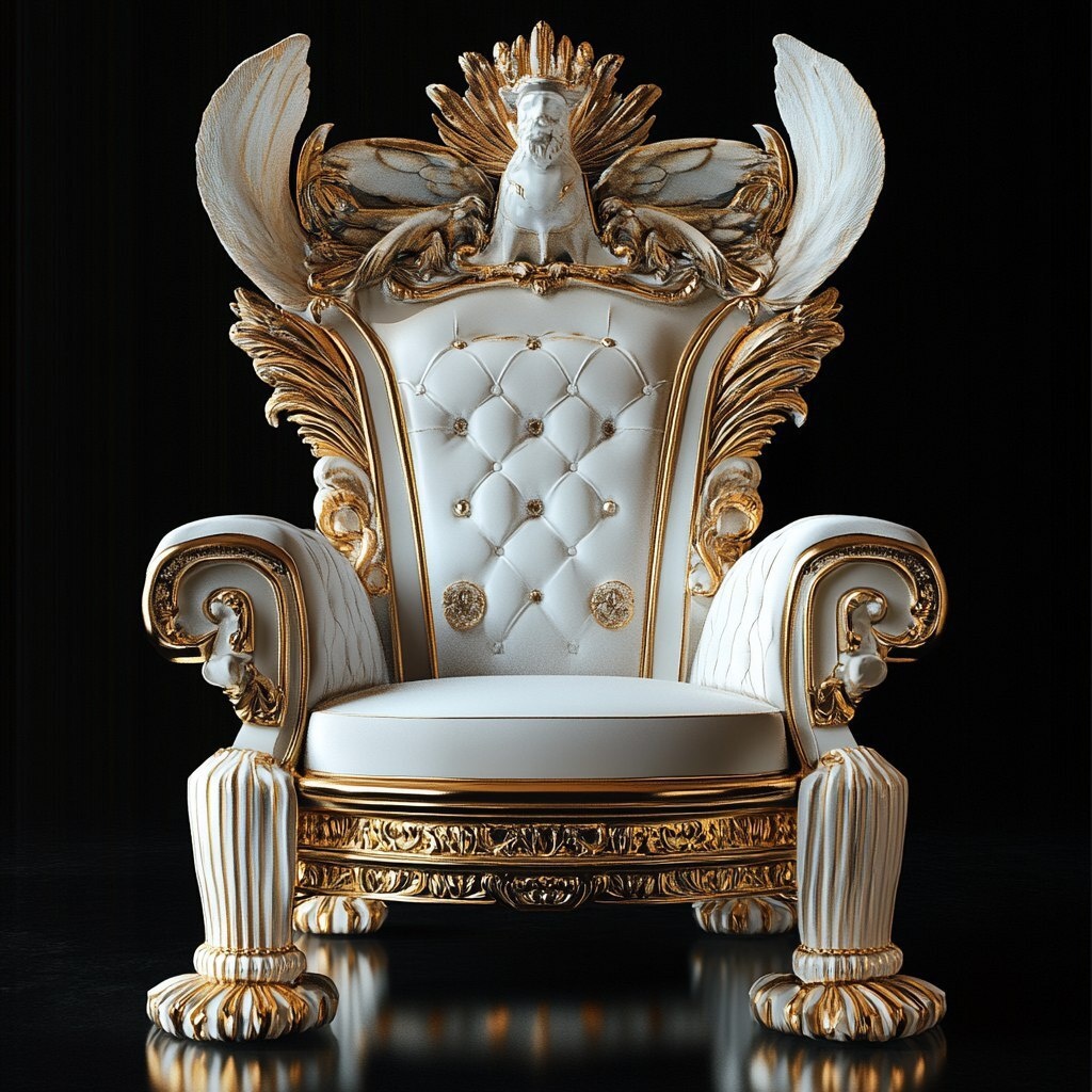 Создано на основе запроса: Trône grec de style mythologique dorré avec assise blanche, UHD