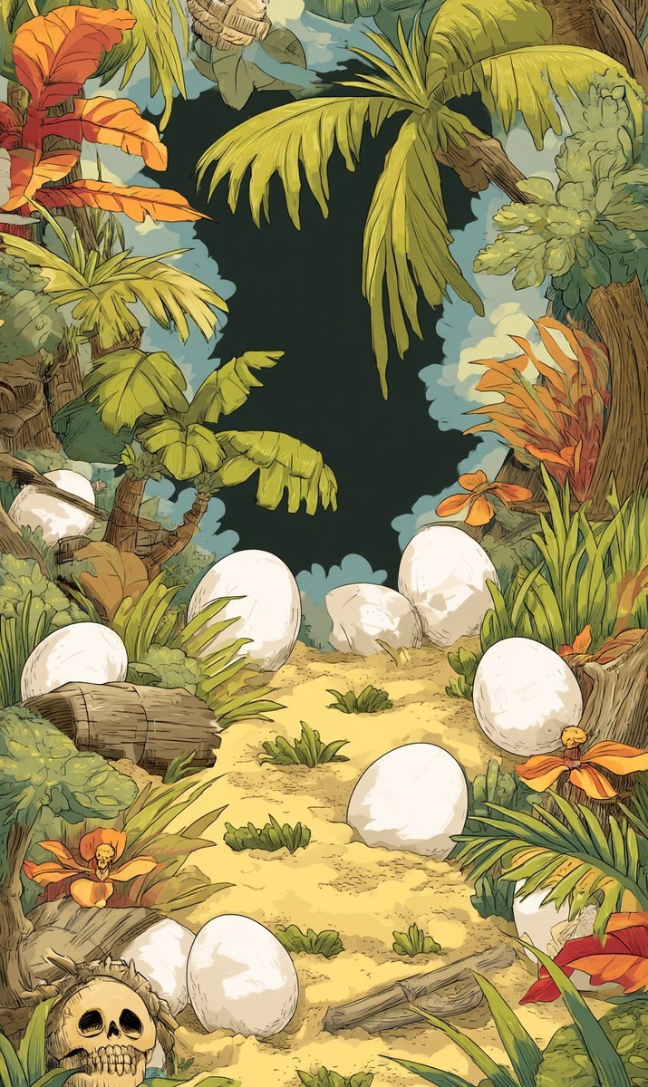 Создано на основе запроса: pirate themed easter banner with eggs hidden in jungle or sand