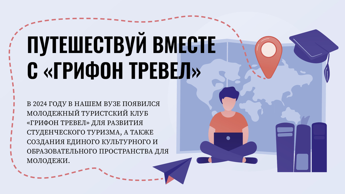 В 2024 году в нашем вузе появился молодежный туристский клуб «Грифон Тревел» для развития студенческого туризма, а также создания единого культурного и образовательного пространства для молодежи. Мы пообщались с руководителем клуба Валерией Ющенко и узнали о возможностях, которые «Грифон Тревел» предоставляет студентам. – Инициатором создания туристского клуба была я – на тот момент студентка 2 курса факультета сервиса, туризма и гостеприимства. Основной целью «Грифон Тревел» является помощь студентам нашего университета бюджетно путешествовать по России, знакомиться с другими вузами и их образовательными программами, а также проведение авторских экскурсий по Санкт-Петербургу. – Клуб занимается разработкой и организацией различных маршрутов по городу на Неве. Например, студенты могут поучаствовать в квесте по Васильевскому острову «История одной пропажи». Этот квест – не просто игра, а настоящее путешествие в прошлое, во время которого ребята познакомятся с историей и неизвестными широ
