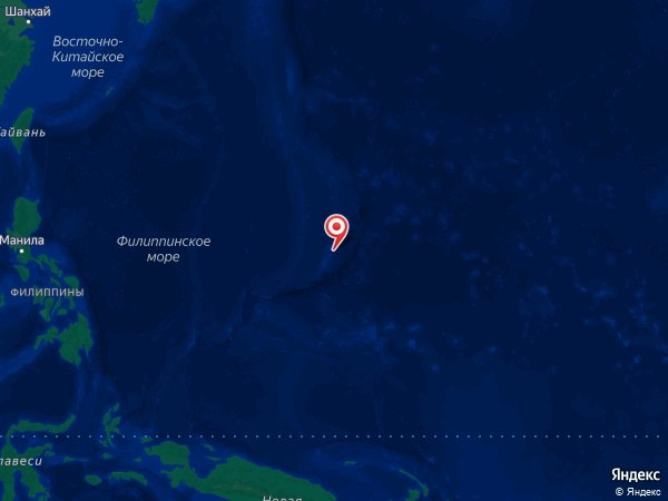 В 68 км к югу от Сайпана, северных Марианских островов.