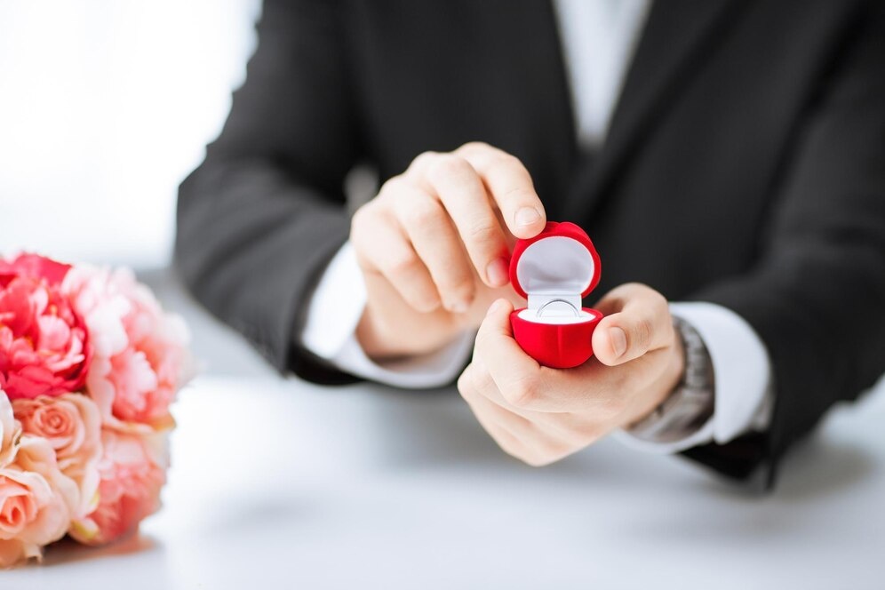 Ну а когда был антракт, то парень весьма удивил ее, ибо когда они сели выпить кофе он взял и... сел на одно колено и достал заветную коробочку. Тимур открыл ее, протянул Геле колечко и сказал: