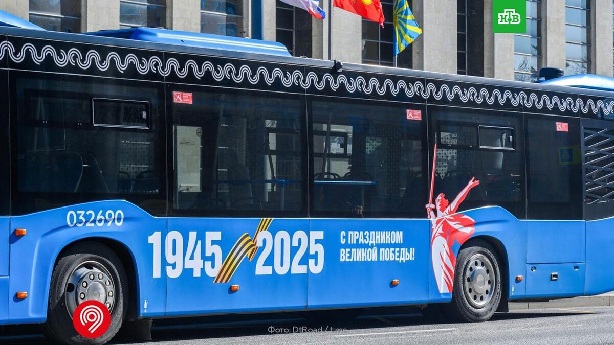 [ Смотреть видео на сайте НТВ ] Столичный общественный транспорт украсили к 9 Мая. В Москве украсили наземный транспорт в преддверии Дня Победы. Праздничное оформление получили 65 автобусов и 14 электробусов, рассказал заммэра столицы Максим Ликсутов. Максим Ликсутов: «Совсем скоро наша страна будет отмечать 80-летие Победы в Великой Отечественной войне. В честь памятной даты сделали новое оформление для автобусов и электробусов». Также 80-летию Победы посвятят открытие мотосезона в столице. Старт запланирован на 26 апреля. Гостей ждут как ежегодные традиционные мероприятия, так и новые уникальные события. Ранее мэр Москвы Сергей Собянин распорядился в преддверии 9 Мая увеличить размер единовременной выплаты ветеранам и труженикам тыла. Ее размер составит от 25 до 70 тысяч рублей в зависимости от категории получателей. По материалам: телеграм-канал «Дептранс Москвы». [ Смотреть видео на сайте НТВ ]