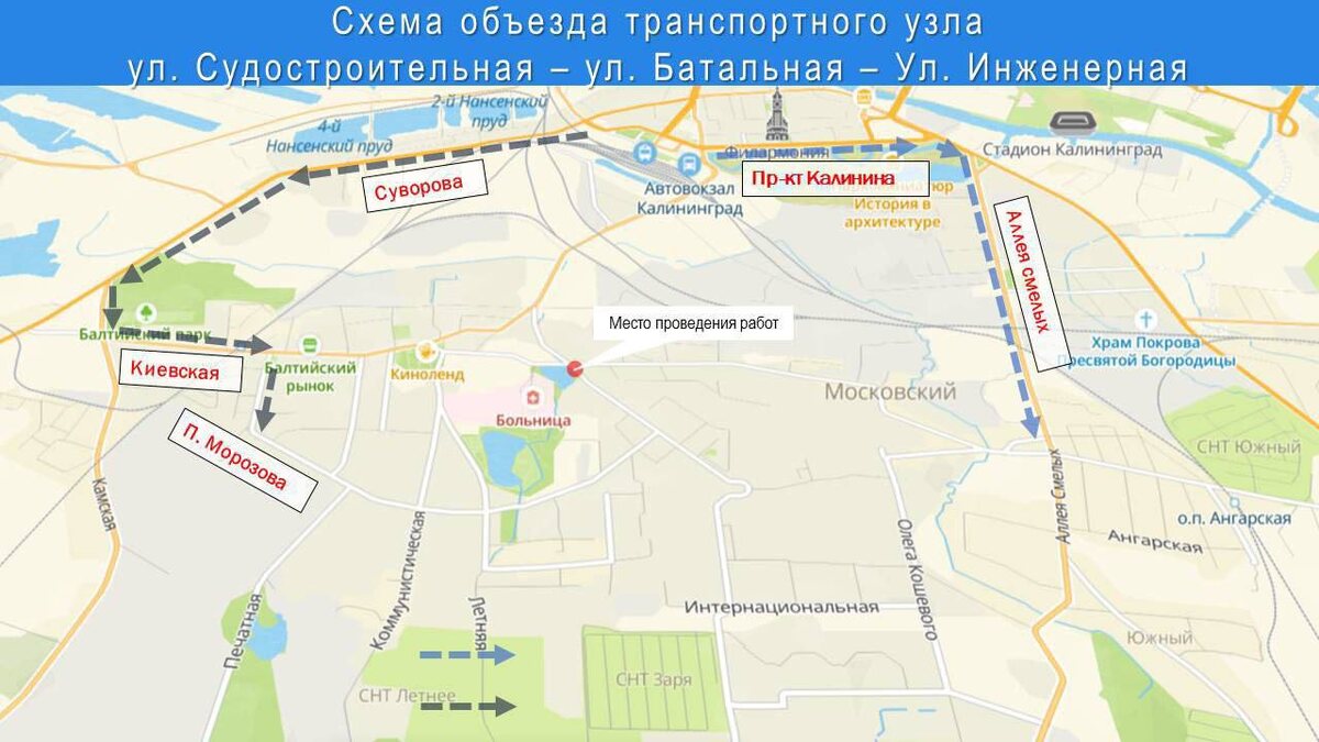 🛣️ На Батальной сохраняются затруднения с проездом «Аварийные службы делают всë возможное, чтобы установить причину провала и ликвидировать её. Возможно, что там проходит одна из неучтенных инженерных сетей постройки до 1945 года, и, поскольку её трассировка неизвестна, приходится копать вручную и очень осторожно», — рассказали в пресс-службе. Представители администрации попросили выбирать альтернативные маршруты через улицу Суворова или Аллею смелых, так как одна из полос занята рабочими. Фото: Telegram-канал администрации Калининграда. 📺 КАСКАД Прислать новоcть