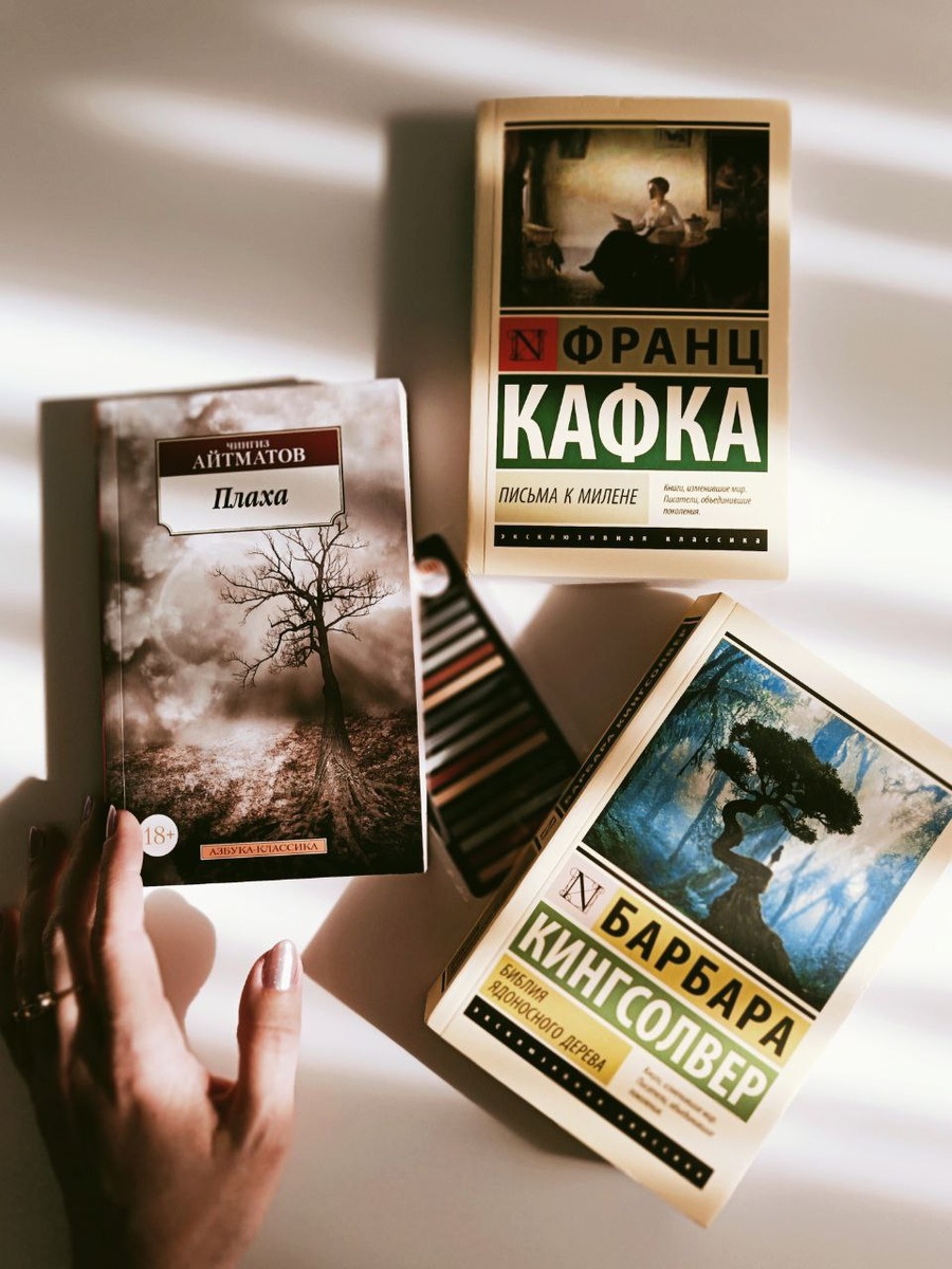 "Я не могу слушаться одновременно ужасных голосов моей души - и Вас, но я могу слушать те и доверять их речи Вам - только Вам и никому другому на свете", ⠀⠀ - писал Франц Кафка в своих письмах к Милене Есенской, чешской журналистке, занимавшейся переводами некоторых его текстов. На фото - мои новые книги 🤩 🌫 Внепланово готовлюсь к сч романа Чингиза Айтматова "Плаха" - у меня есть издание "Большие книги", но для удобства передвижения взяла "Азбуку-классику"; 🌫 "Письма к Милене" Франца Кафки - ими я зачитывалась в выходные! 🌫В 1919 году Милене попадается рассказ «Кочегар» пражского писателя Франца Кафки и она пишет ему письмо с просьбой разрешить ей перевести его с немецкого на чешский. Это письмо послужило началом интенсивной и страстной переписки. Есенская и Кафка встречались дважды: в первый раз они провели четыре дня в Вене и затем один день в Гмюнде🌫 В конце концов их отношения по переписке прекратились, потому что Милена была замужем. 🌫Эти письма без ответа наполнены тре