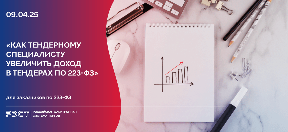 Дата: 09.04.2025 Время: 13:00 (МСК) Участие бесплатное, регистрация обязательна - https://lp.r-est.ru/dokhod_v_tenderakh