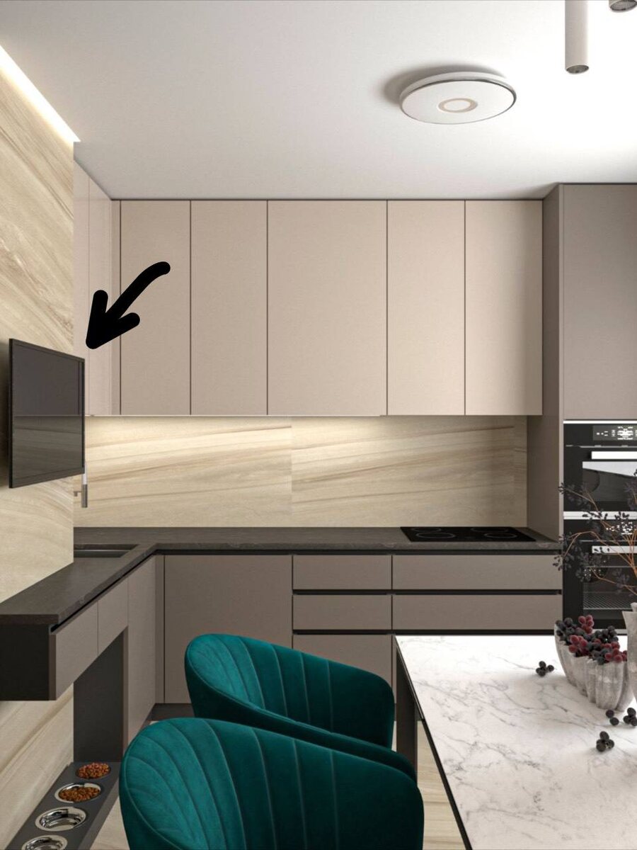 Как обыграть вентиляционный короб на кухне?🤔 🔹Сделать короб местом для установки телевизора. 🔹Расположить кухню по двум сторонам от короба, если он находится в углу и его размеры превышают глубину верхних ящиков. 🔹Спрятать короб за верхними базами. 🔹Установить полку до выступа короба. 🔹Напротив, сделать акцент на коробе. Какой вариант подойдет для Вашей кухни, нужно рассматривать для каждого случая индивидуально. 📩 Для заказа пиши в личные сообщения @MagJust_krs #интерьер