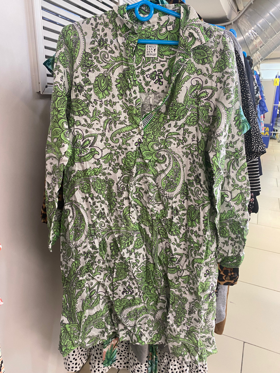 Привет) Налью сегодня Елея на Мегахенд, не все же ему в аутсайдерах ходить. Пора уже возрождаться из небытия. В субботу, в Мегахенде, было новое поступление, и я, вопреки всем негативным отзывам , снова навострила туда «лыжи». Хотя на тот момент погода была весенняя, это сегодня на Среднем Урале снова наступила зима( Появилась я там «шапочному разбору», и большинство вещей было разобрано более юркими покупателями. Нашла льняное платье с огурцами от бренда Emili Van Den Berg. Льняное платье Эмили Ван ден Берг выполнено из чистого льна. Оно отличается расклешенной посадкой с узором пейсли и отложным воротником. Кстати, заметила, что в этот раз вещи были не отпаренные. Похоже, решили экономить на электричестве. Ну и правильно, мы сами погладим- по стираем. Главное от Вас- качественны товар. То платье, на официальном сайте, продавалось со скидкой, и цена его была 60€, в пересчете на рубли 5580, что все равно дороже чем 1800, которые за него просили в магазине, вместе с моей комиссие