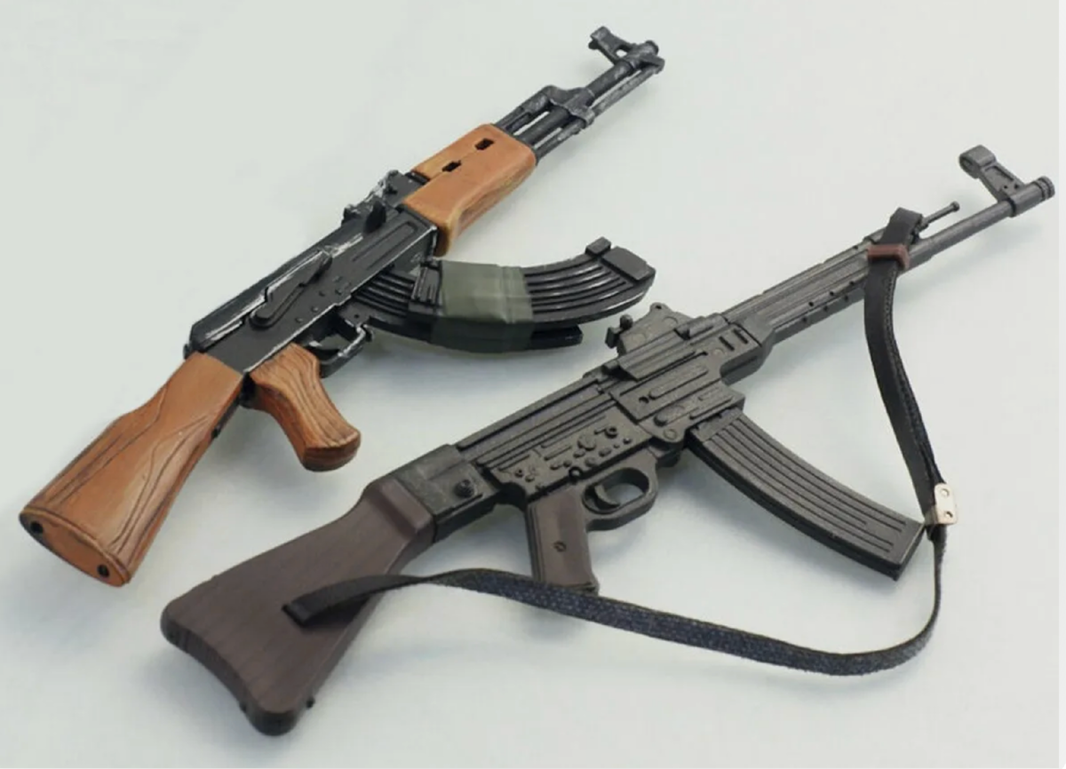 На заре холодной войны, когда советские конструкторы создавали новое стрелковое оружие для Красной Армии, родился миф, который живёт до сих пор. Многие искренне верят, что автомат Калашникова — это всего лишь переработанная копия немецкого Sturmgewehr 44. Но правда гораздо интереснее этого упрощённого взгляда. Послевоенные годы стали временем интенсивного развития стрелкового оружия. Немецкий StG 44 действительно произвёл революцию, впервые массово реализовав концепцию автомата под промежуточный патрон. Однако было бы ошибкой считать, что советские инженеры просто скопировали эту разработку. История создания АК-47 — это история самостоятельного поиска оптимальных решений. Внешнее сходство между двумя автоматами действительно бросается в глаза. И изогнутые магазины, и пистолетные рукоятки, и общая компоновка — всё это создаёт иллюзию прямой преемственности. Но если присмотреться внимательнее, становится ясно: перед нами два принципиально разных оружия, созданных на основе разных инженер