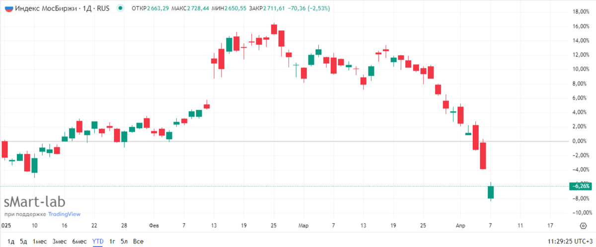 С начала года индекс Мосбиржи скорректировался на 6%.